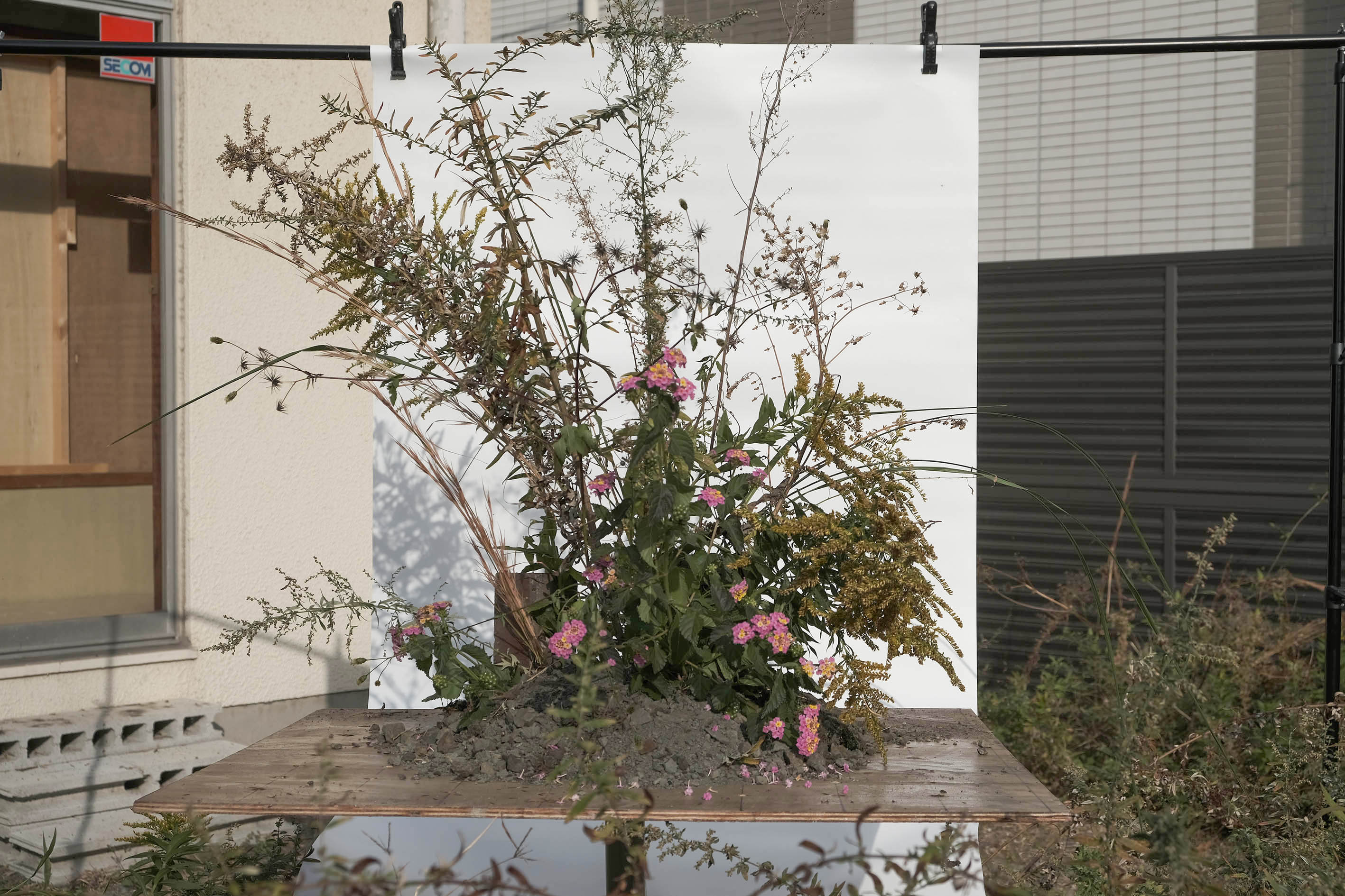 I began researching ways to give order to the existing "weedy situation" instead of simply cutting down the growth of weeds, so that we wouldn't need to weed. From July 2022, for nine months, I pruned the weeds growing in the garden of the former Minato Dormitory of Nagoya Custom. I executed this as a method of seeking something aesthetic that harmonizes with the diverse conditions of the weeds and relates to the space.